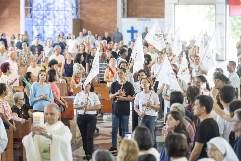 No final da celebração, a cruz jubilar, instalada na Catedral na abertura do Ano Santo, foi levada até o presbitério juntamente com uma vela e 11 bandeiras representando os decanatos da arquidiocese. Num gesto simbólico, o atual coordenador da Ação Evangelizadora, padre Alexandre Alves Filho, entregou uma vela com o nome de todos os decanatos ao padre Dirceu Júnior dos Reis, novo coordenador arquidiocesano. Diante da cruz, os fiéis entoaram o cântico do Te Deum, em ação de graças pelo Ano Jubilar.