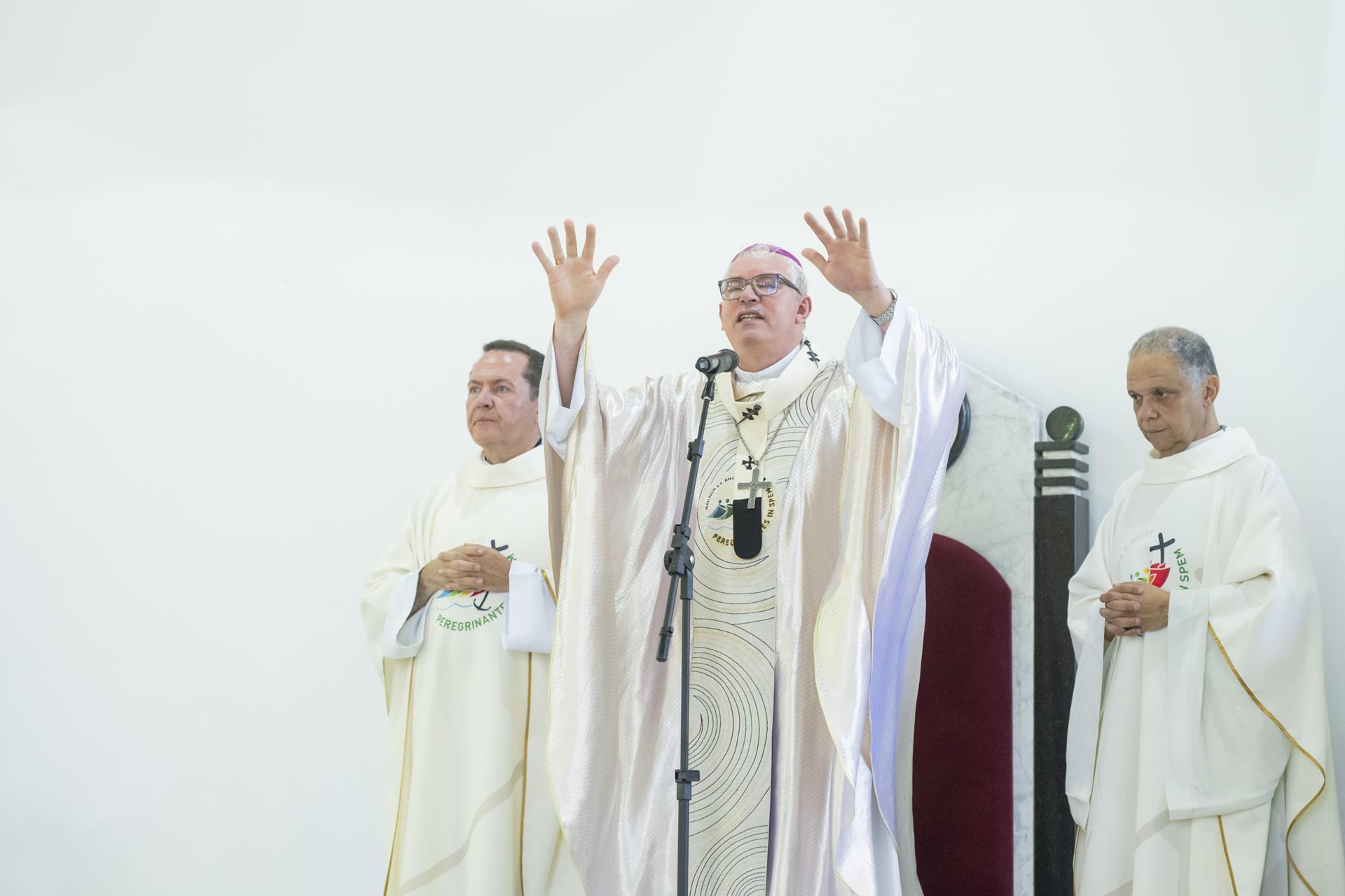 Em sua homilia, dom Geremias reafirmou o tema deste Ano Jubilar: a esperança. “A esperança que nos sustenta e nos move não é passiva, mas é uma esperança que nos mobiliza internamente a buscar o bem que queremos”, disse dom Geremias. E assim, mobiliza cada cristão a permanecer sempre a caminho. E ser sempre peregrino, mesmo em meio a tribulações, buscando vida nova, conversão, mudança e sentido para a vida e para a existência.
